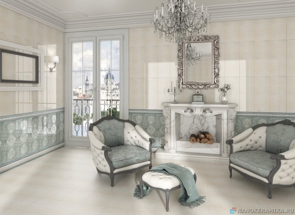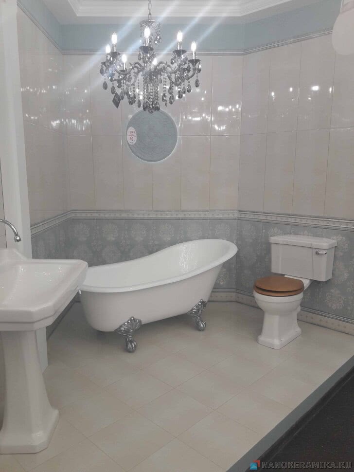 Серия Victorian – это коллекция плитки, созданная по мотивам старинных английских обоев: рисунок и фактура плитки точно имитируют их дизайн. В состав коллекции входит плитка кремового и голубого цветов, а также разнообразный декор. Используя различные сочетания базовых и декоративных элементов, можно получить уникальный рисунок облицовки. Плитка из этой серии выглядит роскошно и презентабельно, с ее помощью можно создать романтичный интерьер с нотами ретро. На фоне этой плитки эффектная дизайнерская мебель, сантехника и светильники будут выглядеть гармонично и уместно.