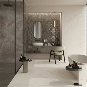 Сатинированная керамогранитная плитка дешево позволяет создать настоящий шедевр при облицовке стен и полов, так как она изготавливается с добавлением минеральных компонентов, придающих ей особенно притягательный узор и уникальный эффект игры света.